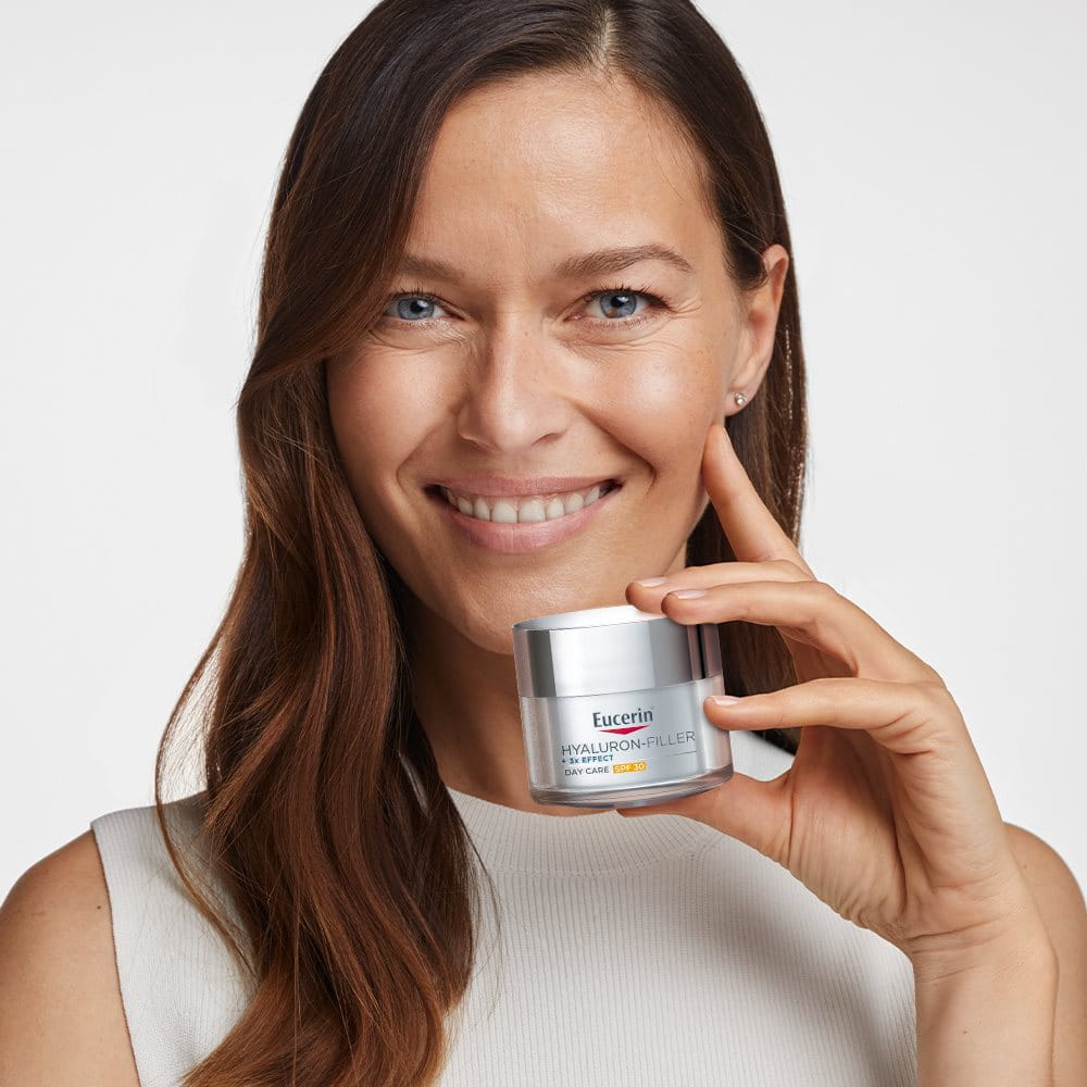 Eucerin Hyaluron-Filler je specijalno formulirana da deluje na prve znake starenja kao što su fine linije i bore. S obzirom na to da se naša koža razlikuje kao i mi sami, ona može drugačije stariti s obzirom na našu genetiku i način života. Ovi znakovi starenja se mogu normalno javiti kod osoba oko 30te godine. Preparati Hyaluron-Filler linije deluju protiv procesa starenja tako što popunjavaju duboke bore. Za vidljivo glatku, blistaviju i podmlađenu kožu.