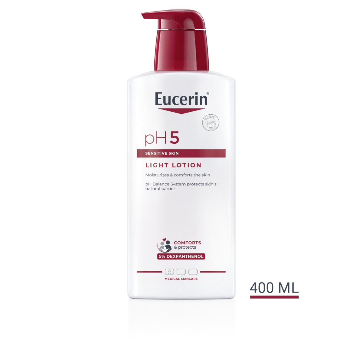 Eucerin pH5 Lagani losion je blag, ali efikasan preparat za hidrataciju tela koji je posebno formulisan da učini suvu, osetljivu kožu tela otpornijom i manje osetljivom. Jedinstveni Eucerin pH Sistem ravnoteže sadrži pH5 Citratni pufer kako bi se obnovila i održala optimalna pH vrednost kože. Losion za telo sadrži, takođe i dekspantenol, aktivni sastojak poznat po svojim regenerativnim svojstvima.